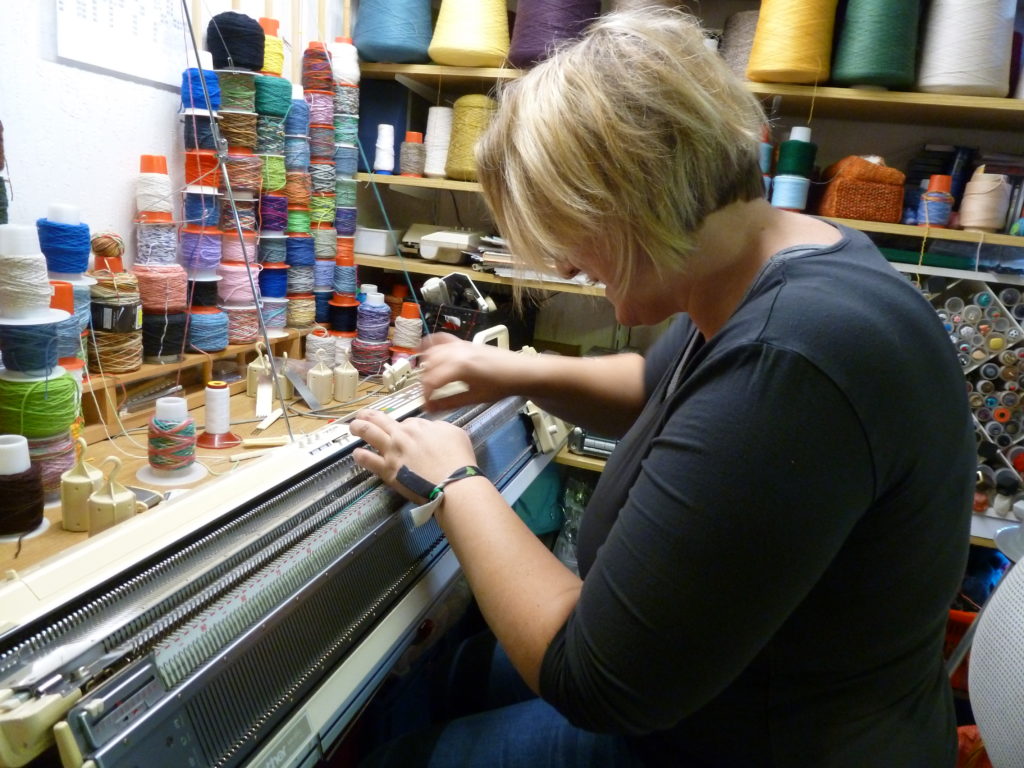 Gestern und heute morgen war wieder mal Strickunterricht angesagt. Eine Dame hatte sich angesagt und angekündigt, dass auch ihr Mann mitkäme. Und als sie dann angekommen waren, wurde mir mitgeteilt dass er der Strickschüler sei. Alles klar. Blutiger Anfänger an der Strickmaschine mit der Zielsetzung Socken stricken. Und was soll ich euch sagen? Er war sehr gelehrig und hatte gestern Abend seinen ersten selbstgestricken Doppelbettstrumpf fertig! Er ist total fasziniert vom Maschinenstricken und wird dann zu Hause gleich damit fortfahren.
