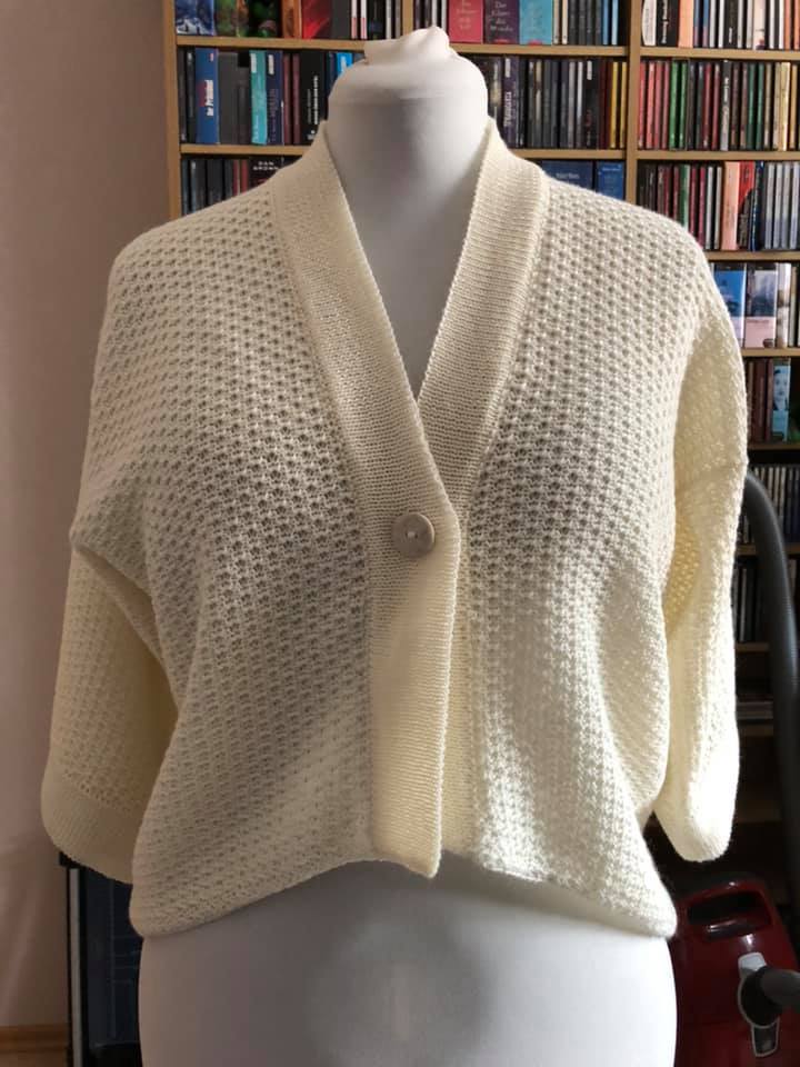 Mein Sohn wird im Juni heiraten. Und da hat sich die Braut ein schlichtes Jäckchen zum Drüberziehen bei mir bestellt. Sie möchte aber keinen Braut-Schnickschnack fürs Jäckchen, denn sie will es danach auch noch tragen können.
